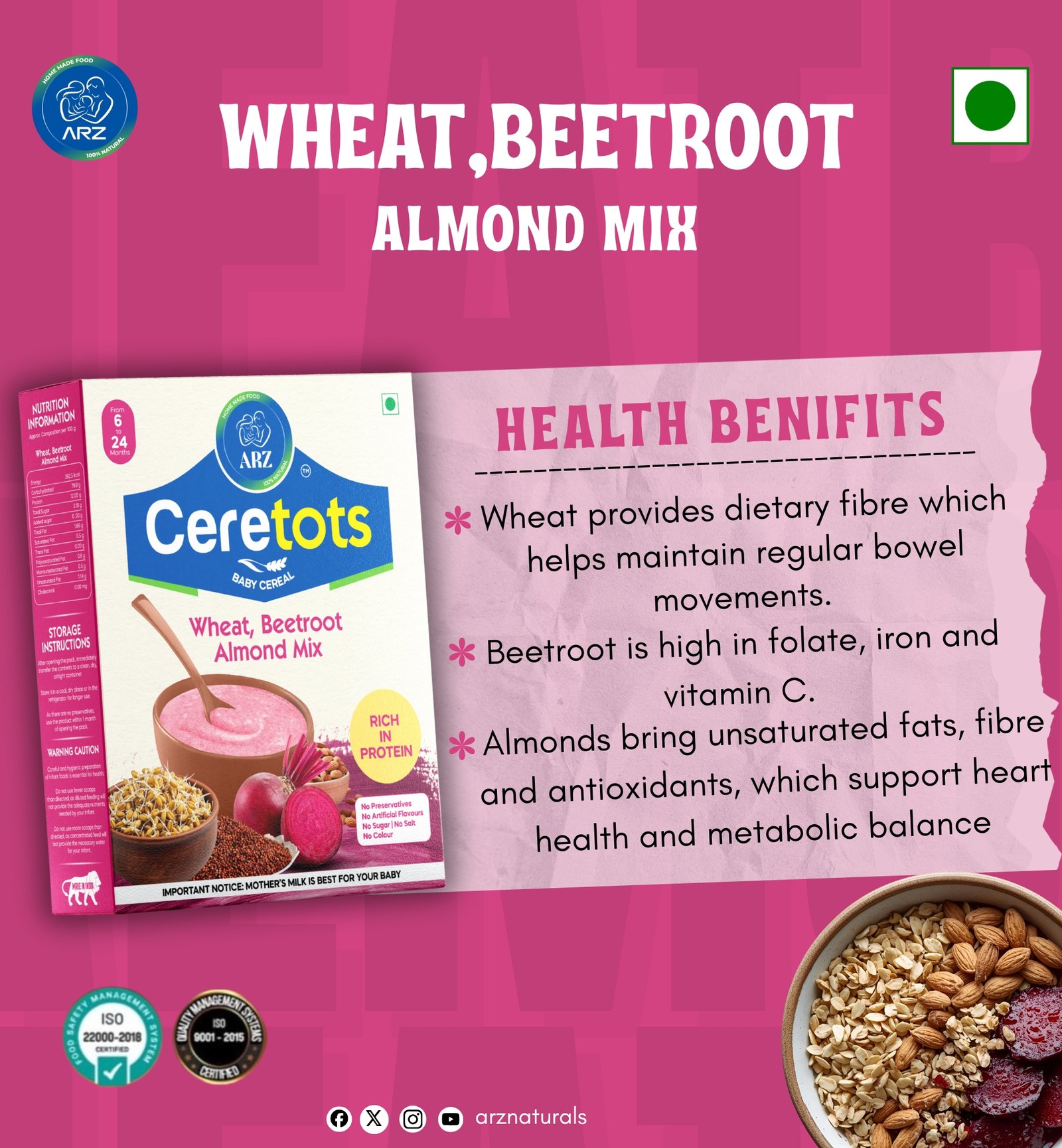 ARZ CERETOTS, Wheat, Beetroot ,Almond Mix, Baby Cereal (300 g, 6+ Months)